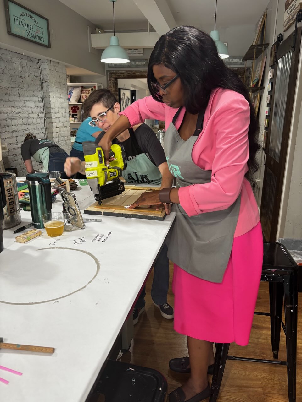 In appreciation for all that they do each and every day, the administrative team ‘logged out’ for an afternoon to showcase their artistic creativity and ability in another way. The team attended a hands-on-class where each chose a home décor project to put together from raw materials.
